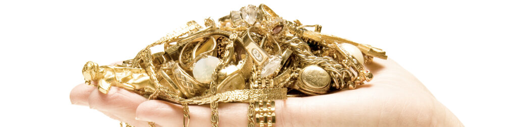 Unter Altgold versteht man alle Arten von Gold, die bereits schon einmal zu Schmuckstücken, Uhren oder anderen Gegenständen verarbeitet wurden. Auch Zahngold und Münzen fallen unter den Begriff Altgold. Dabei ist das tatsächliche “Alter” des Edelmetalls völlig unwichtig.