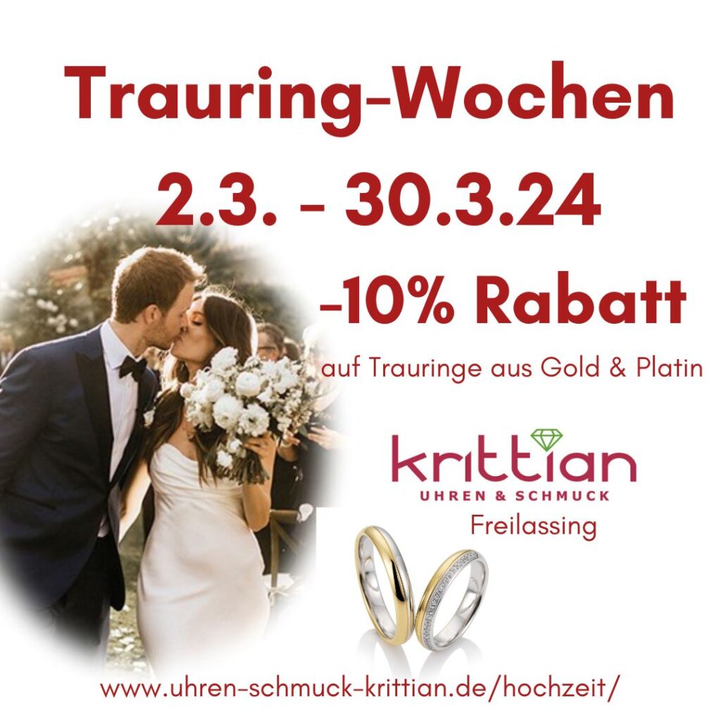 Trauringwochen 1.3. bis 30.3.25 -10% Rabatt auf Eheringe