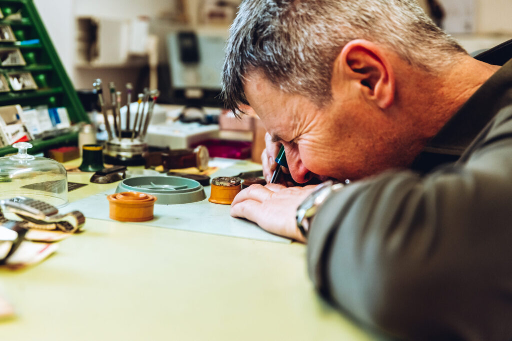 Der Beruf des Uhrmachers erfordert handwerkliches Geschick, technisches Verständnis, höchste Präzision und die Fähigkeit Probleme zu lösen. Unser Uhrmacher erledigt alle Service-Arbeiten präzise, schnell und zuverlässig. Die Servicepalette unserer Uhrmacherwerkstatt umfasst Uhrenreparaturen aller Art – egal ob Damenuhr oder Herrenuhr.